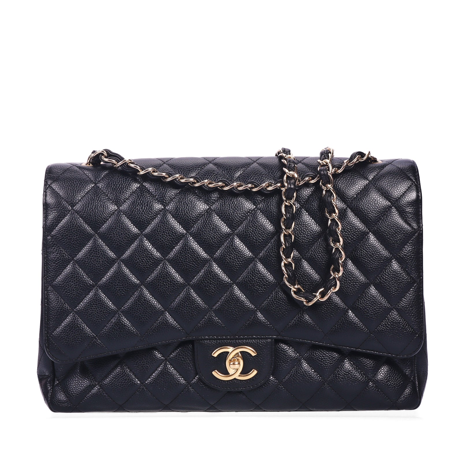 Pre-Owned Chanel Classic Flap Maxi Black Calfskin Shoulder Bag 88890681 c