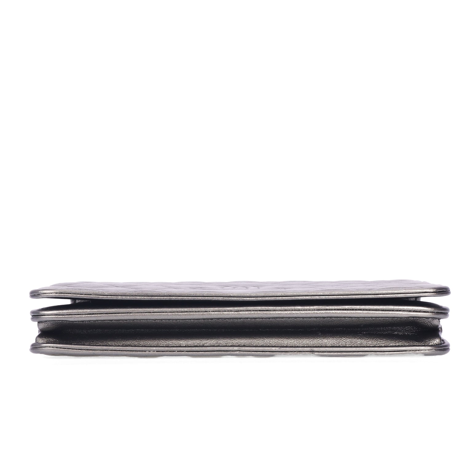 Pre-Owned Chanel Silver Gray Calfskin Wallet on Chain 96139721 c